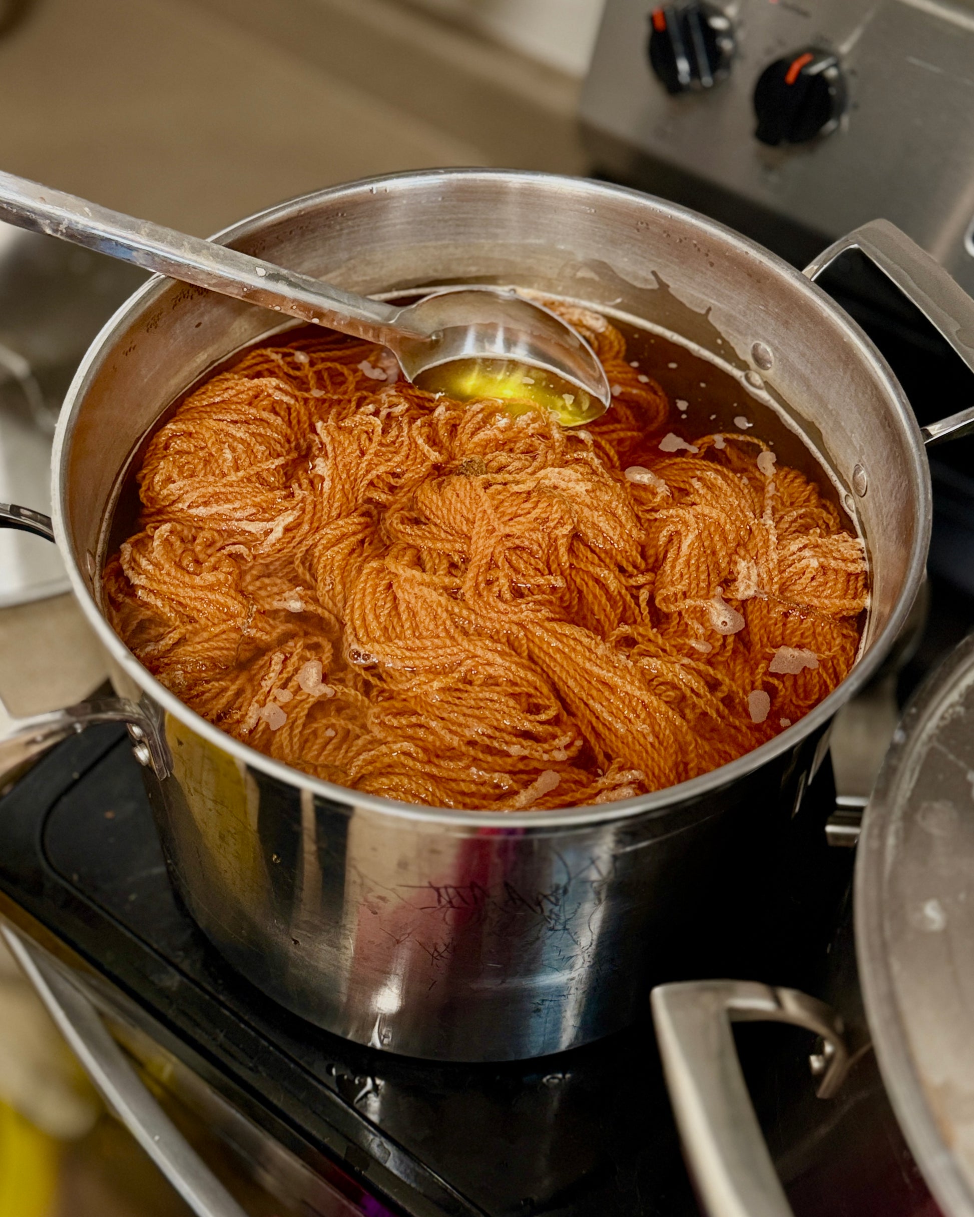 - Instruction in mordanting and dyeing wool with natural dyes